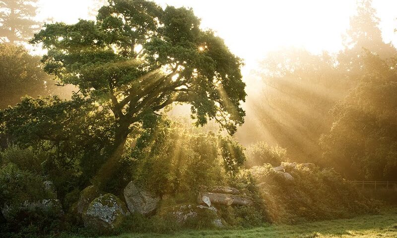Στους ευρωπαϊκούς μύθους, το ηλιακό ξίφος / λόγχη (ως γεννήτωρ πολιτισμού) βγαίνει από την κοσμική βελανιδιά για να σκοτώσει τους δράκους της γης… Σήμερα, αν και οι δράκοι εγκατέλειψαν εθελουσίως τη γη, αν και τα ξίφη εξορίστηκαν σε μακρινές ιστορίες και μαγικά παραμύθια, οι βελανιδιές δεν έχασαν ούτε τη μεγαλοπρέπεια, ούτε την ιερότητά τους. Και, πάνω απ’ όλα, δεν έχασαν την λάμψη τους, κατακρατώντας το φως του ήλιου… Ο καταλυτικός τους ρόλος, όπως και γενικότερα ο ρόλος του δάσους, διαφυλάχτηκε μέσω της Τέχνης.