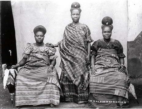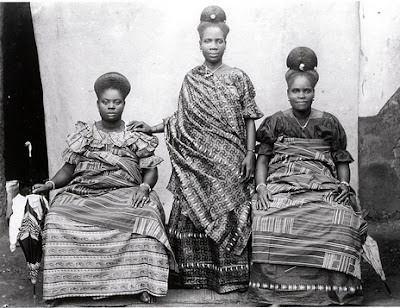 Γυναίκες Ασάντι δούλες με τις χαρακτηριστικές ενδυμασίες. |