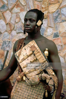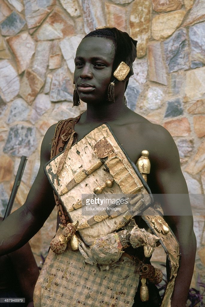Σύγχρονος Ασάντι με στρατιωτικά υλικά του προγόνου του από τους πολέμους με τους Άγγλους. |